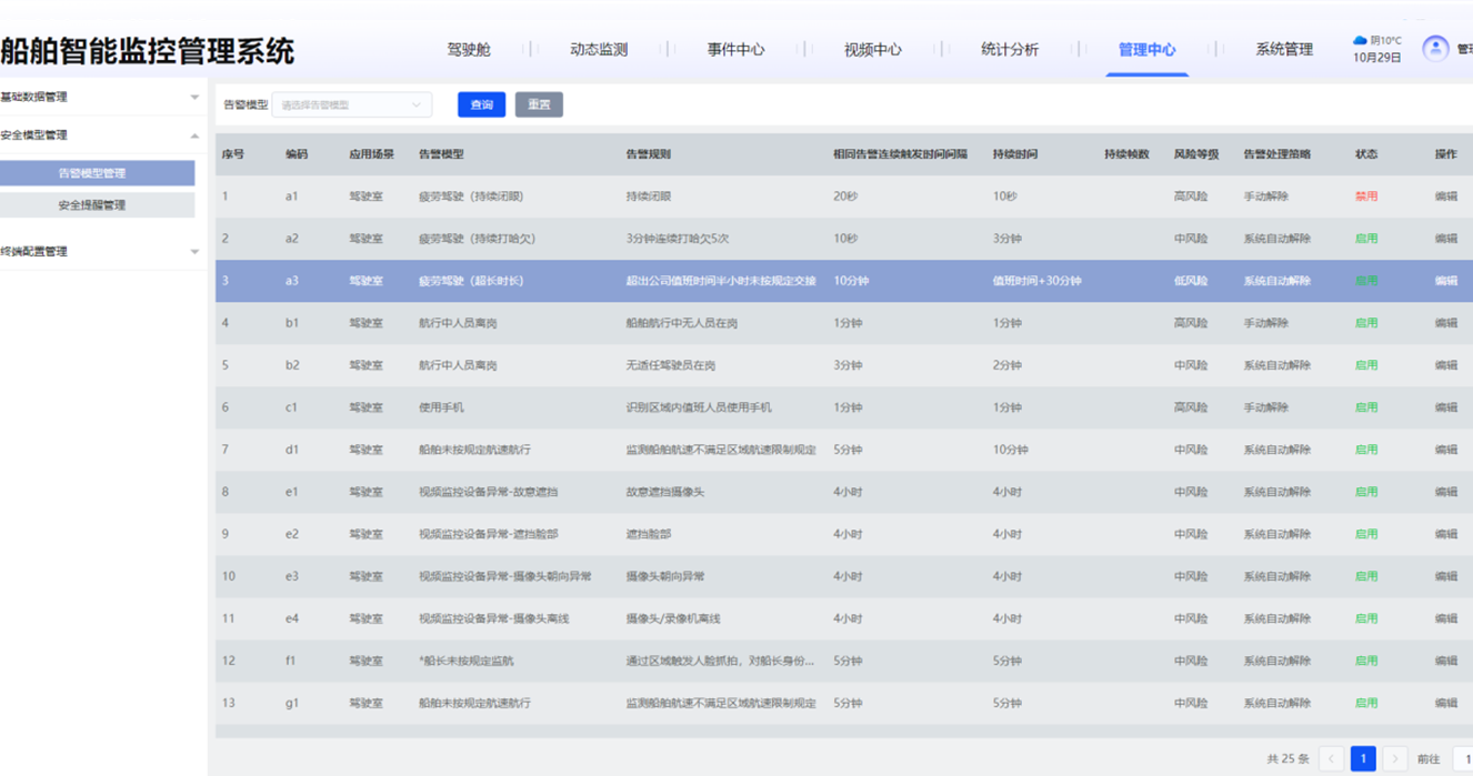 4)管理中心:支持对船舶智能终端,以及船员、企业、风险水域等核心要素进行管理,为监管提供数据基础。
